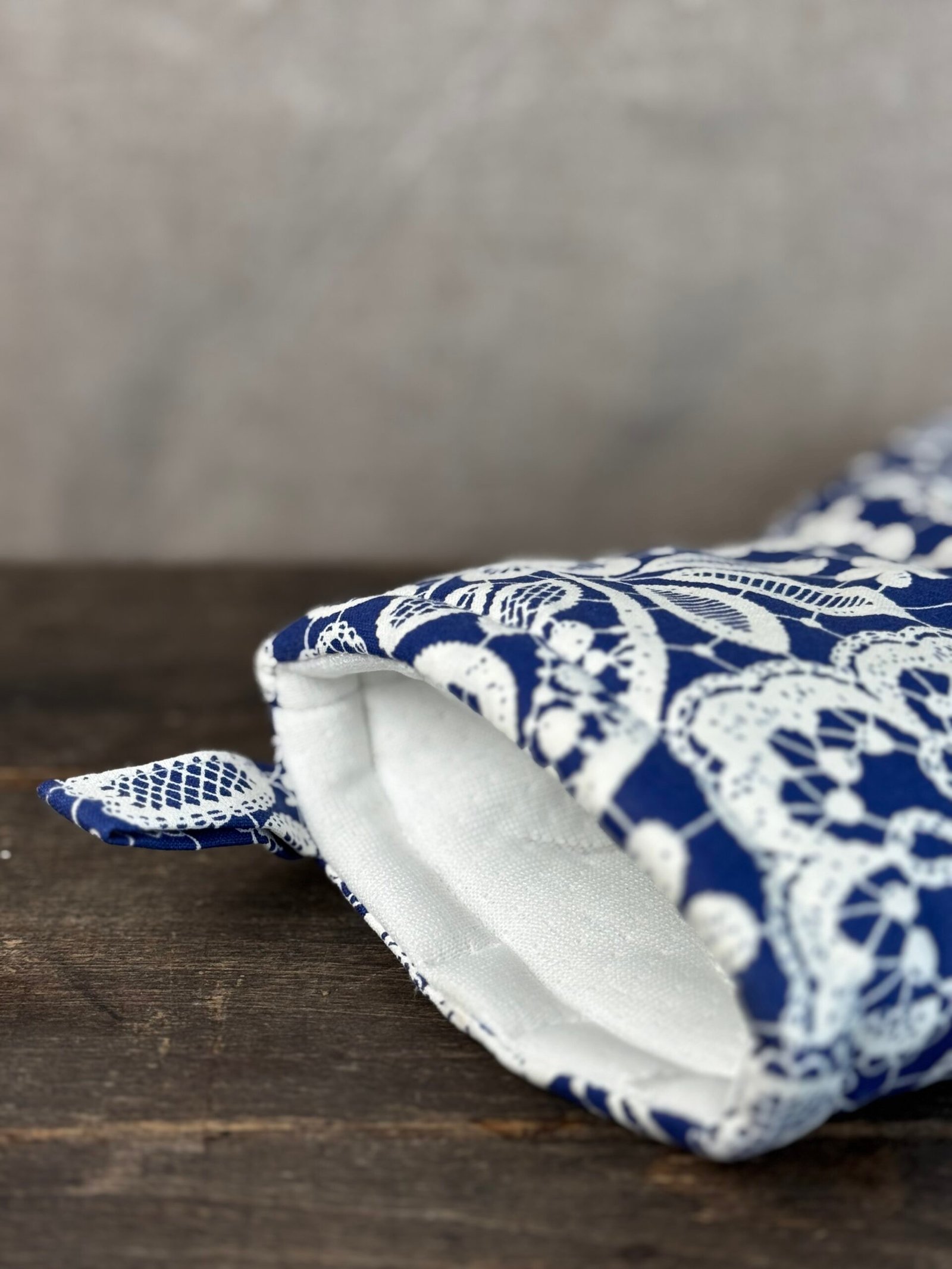 Chňapka krajka modrá