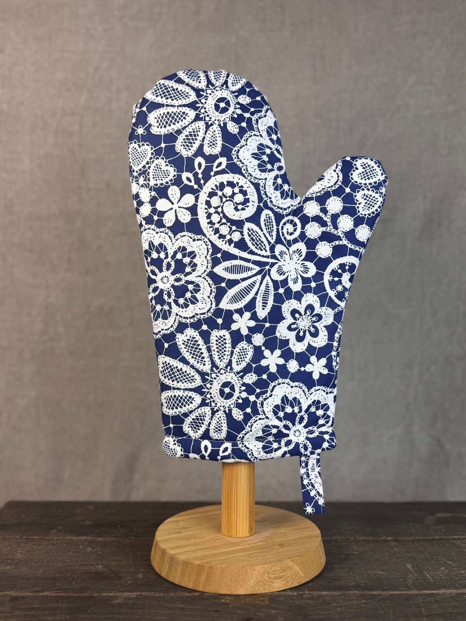 Elegantní chňapka s krajkovým motivem je nadčasovým doplňkem, který krásně zapadne do každé kuchyně. Její jemný vzhled podtrhne útulnou atmosféru domova, zatímco kvalitní termoizolační vrstva spolehlivě ochrání ruce při práci s horkým nádobím. Praktické poutko spolu s magnetem umožní snadné zavěšení a vždy pohodlné umístění.